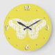 Relógio Grande Esboço da borboleta, ouro da mostarda e branco