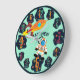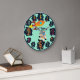 Adicione um nome e título a este relógio de parede com tema de viagem espacial para rapazes ou raparigas. Ele apresenta números divertidos com alienígenas, foguetes, astronautas e planetas.