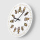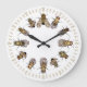 O relógio de parede apresenta vários marcadores genéticos drosófilos, com ovos marcando segundos e minutos.
