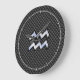 Um cromo prateado como o símbolo Aquarius zodiac em um fundo design de fibra de carvão, estilo fibra de carbono. Um design moderno urbano para uma ideia personalizada de presente de aniversário de excelente. Use o link "Perguntar a este Designer" para entrar em contato conosco com suas solicitações especiais de design ou para obter assistência com suas necessidades de personalização.
