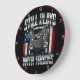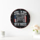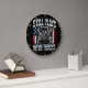 Este relógio é uma declaração nostálgica e orgulhosa de alguém que nunca superou o seu amor pelos caminhões. Apresentando uma poderosa ilustração de caminhão, provavelmente um Peterbilt ou um clássico semelhante, ela é colocada sobre um fundo preto com uma jante vermelha em negrito. O texto "EU AINDA BRINCO COM CAMINHÕES" é exibido de forma destacada em uma fonte branca angustiada, com sotaques azuis, fazer uma declaração divertida e duradoura sobre uma paixão de toda a vida.