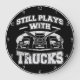 Este relógio é uma declaração ousada e orgulhosa de alguém que nunca superou o seu amor por grandes plataformas. Ele apresenta três semicaminhões distintos alinhados, criando um visual poderoso. Contra um fundo preto com uma jante branca, o texto "EU AINDA BRINCO COM CAMINHÕES" é exibido com destaque em letras brancas angustiadas, fazer forte declaração sobre uma paixão de caminhonete pela vida toda.