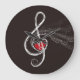 Eu ouvi um DESIGN de MÚSICA com um coração vermelho em uma Clef de Tremor branco no fundo preto e há alguma música flutuando no ar! Para músico ou amante de música!