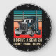 Esse relógio é perfeito para o motorista de caminhonete com forte personalidade e senso de humor. Apresentando uma caminhonete azul legal contra um pano de fundo retrosolar e a frase hilária "EU DIRIJO UM SEMI PARA QUE EU NÃO CHOQUE PESSOAS", é um presente único e relacionável para qualquer guerreiro rodoviário.
