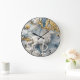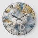 Um relógio de Natal maravilhosamente trabalhado com uma rena majestosa com chifres espantosos. A intrincada design apresenta uma mistura de ouro e azul, capturando a essência do inverno. Esta peça serve como decoração única para a época de férias.