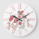 Este relógio cônico de natal apresenta um tema encantado de floresta. Uma imagem de uma fada e borboleta bonitinhas é feita de flautas entre cogumelos e folhagem florestal. Duas pequenas canetas doces são colocadas em ambos os lados, e flocos de neve rosados e brilhantes estão caindo por aí. As horas são impressas em um padrão numérico romano rosa suave.