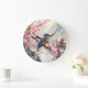 Relógio Grande Fantasy Cute Sakura Bird Blue