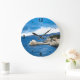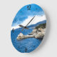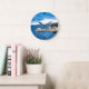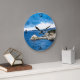 Lindo relógio de parede com tema marinho, apresentando uma fotografia original de um pequeno farol vermelho sobre um penhasco branco em Bastia, Corse (França), sob um céu tempestuoso em um dia de verão.