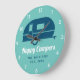 Um relógio de parede alegre, perfeito para seu campista ou RV. Mostrado com um fundo de cor verde e design de campista marinho com a frase "Happy Campers". Personalize seu nome de família para torná-lo de um tipo. A cor de fundo também pode ser alterada para corresponder ao decoro e às preferências.