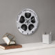 Um relógio de parede de estilo urbano com algarismos brancos e pretos e uma ilustração digital de um filme retrô. Disponível em outras opções. Visite nossa loja para ver mais presentes no cinema e outros acessórios domésticos.