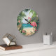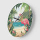Este relógio de parede redonda apresenta uma ilustração vibrante de um flamingo parado numa praia tropical. Palmeiras exuberantes e um fundo oceânico sereno rodeiam o flamingo. A face do relógio tem números nítidos e mãos pretas, combinando funcionalidade com design capricho. A estética global evoca um relaxante paraíso tropical, perfeito para adicionar um toque de verão a qualquer espaço.