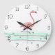 Médio do século inspirado no design com um toque retrorreflector com um flamingo rosa em pé na água aqua contra fundo branco. Um design personalizável para você personalizar com seu próprio texto, imagens e ideias. Uma imagem de arte digital original criada por Jess Perry no QuirkyChic Retro.