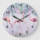 Relógio Grande Flamingos cor-de-rosa da família tropical branca
