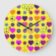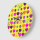 Relógio Grande Flor Power Heart Peace Pattern + seu backgr.