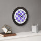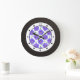 Um estilo botânico e homey, onde a foto de um padrão de flores azuis de Geranium encontra o círculo branco do relógio com pontos pretos por todas as horas, exceto 3, 6, 9 e 12. É adicionado o que parece um quadro colorido preto. Você pode ajustar a cor de fundo (parte centralizada) personalizando a cor deste produto. Um relógio perfeito para qualquer casa brilhante e alegre, e, claro, no escritório de uma pessoa amorosa do jardim - ou estufa.