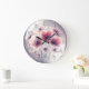 Relógio Grande Flores Brancas Vermelhas Anemone