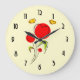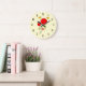 Relógio Grande Flores Cute Red Heart e Borboletas Amarelas