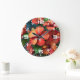 Relógio Grande Flores de Hibisco Vermelho Vibrantes-76894