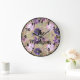 Relógio Grande Flores Russas De Madeira Exclusivas De Roxo Elegan