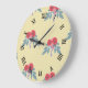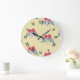 Relógio Grande Flores vermelhas e folhas verdes em castanho