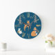 Relógio Grande Floresta de inverno Folha de Arte Azul