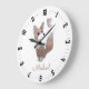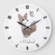 Um lindo e adorável relógio branco ilustrado com cor d'água, raposa de madeira e borboleta, grande relógio de berçário para um menino ou menina. Cores pastéis simples de aquarela castanha.