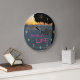 Um belo pôr do sol em uma praia de areia branca na Flórida com um guarda-chuva de palma e um homem sentado em um banco apreciando a vista impressa no relógio de parede. Perfeito para aqueles que sonham com a vida na praia da Flórida! Foto tirada em uma praia em Marco Island, Flórida. Direitos autorais originais de fotografia 2005 e direitos autorais originais de design 2018 de Karen Cofsense.