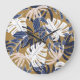 Relógio Grande Folhas Tropicais Coloridas Fundo Laranja