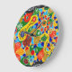Formas e formas notáveis de grande relógio de Abstrato de arte original.Formas e contornos dinâmicos e orgânicos divertidos são definidos em uma composição esboçada assimétrica. A energia e a radiância são representadas com formas distintas, unificadas pela paleta de cores primária e melhoradas com tons, tonalidades e tons. Esta obra de arte original é pintada à mão em acrílico e marcadores pela artista Aleksandra Grbic Hrustic. Direitos autorais, todos os direitos reservados. Este relógio colorido é um belo presente para qualquer quarto.