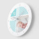 Lembre-se do nascimento do seu novo bebê com o doce relógio azul do padrão de gingham azul aqua com números. Personalize adicionando uma foto, um nome e a data de nascimento do seu bebê.