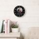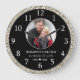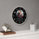 Relógio de parede único para 25 anos de aniversário de casamento para celebrar 25 anos de amor. Personalize o relógio de casamento preto e prata com a foto do casal, nome e anos.