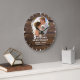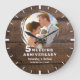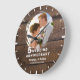 Marque seu 5º aniversário com este relógio atemporal de madeira escura rústica, personalizado com sua foto favorita. Seu visual de madeira desgastada adiciona charme vintage, perfeito para o tema tradicional de aniversário de madeira.
