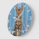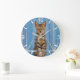 Relógio Grande Gatinho Gato de Nosy Bonito Sentado numa Cerca Azu