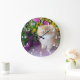 Relógio Grande Gatinhos preciosos Rosa Púrpura Flores Amarelas