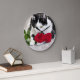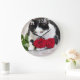 Relógio Grande Gato bonito com a rosa vermelha