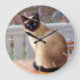 Relógio Grande Gato Siamese Eyed azul de assento temático