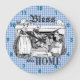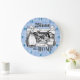 Relógio Grande gingham cheque azul e branco Bless This Home clock