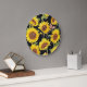 Relógio Grande Girassóis, borboletas, mosaico preto