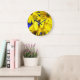 Relógio Grande Girassol amarelo, pulso de disparo de parede azul