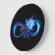 Luminous infinity symbol with glowing, beautiful, lushly blooming rose made of blue flames on black background.