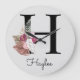 Relógio Grande Grande Letra Inicial Boho Rosa Monograma Cl