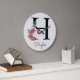 Relógio Grande Grande Letra Inicial H em Rosa Boho Monograma Cl