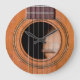 Detalhe a foto da guitarra das cordas e o furo sadio em uma guitarra acústica gasta.