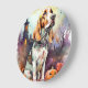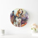 Relógio Grande Halloween Basset Hound Com Pumpkins Assustado