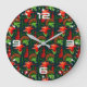 Relógio Grande Hand Painted Exotic Red Flowers Pattern-15541