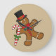 Uma ilustração de um homem de pão de gengibre dançante feliz com um chapéu e uma cana doce. Durante as comemorações de Natal, o pão de gengibre e a cana-de-açúcar estão sempre presentes. Fazer pão de gengibre é uma maneira de se conectar com a família e crianças fazeres felizes.