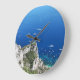 Linda vista em Capri para o mar do azure e os pequenos barcos brancos.