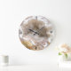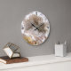 A face deste relógio apresenta uma foto geode marrom e branca. O centro da foto está cheio de druz cristal de quartzo. Os números, 12, 3, 6 e 9 marcam o quarto de hora.
