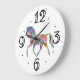 Todas as cores do arco-íris neste cavalo com listras multicoloridas. Esta é uma boa escolha de relógio de parede para crianças.