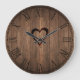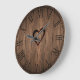 Relógio Grande Impressão de Coração Queimada de Madeira Rústica